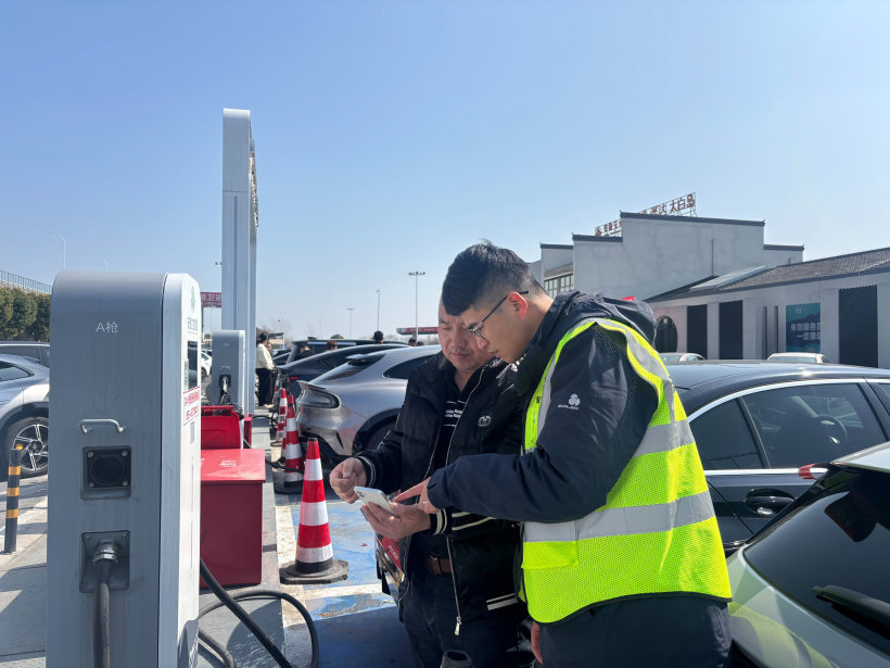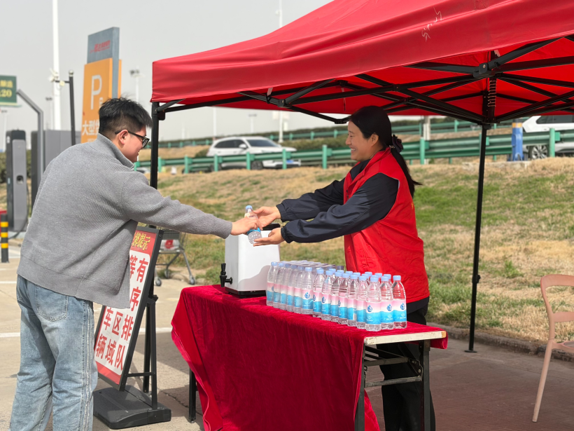 精准施策,打造充电保障“安徽样板”。驿达集团坚持领导靠前指挥、层层压实责任,建立“早研判、早部署、早处置”工作机制,围绕交通运输部和省交通运输厅研判的充电繁忙服务区,对30对服务区推行“一区一策”差异化的充电保障方案,组建工作专班,每日动态更新繁忙服务区名单,通过高速情报板发布预警信息,利用“皖美高速”抖音直播间发布充电繁忙和引导信息。在充电车位总数超4100个、占小车位比超过21%的基础上,灵活向30对重点服务区增配57台移动充电设备,统筹国家电网等5家充电运营单位实行区域包保,投入150余名运维人员24小时值班巡查,增派现场疏导人员230人次,有效缓解高峰时段充电压力。各服务区制作充电提示卡(单),开设充电桩能量补给站,免费提供姜茶、糖果、福字等人性化服务,有效缓解新能源车主等待焦虑情绪。