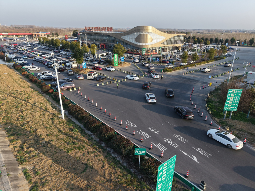 科技赋能、潮汐引导,提升通行“运行效能”。面对春运返程客流集中、车流潮汐波动明显的特点,在新桥服务区正式投用全国首个服务区潮汐车道分时复用智慧系统。依托视频监控、智能道闸、AI算法等智慧化设施设备,实时捕捉南北区车位使用数据。当单侧车位饱和度达到阈值后,即刻启动全流程自动化管控,电子情报板、语音播报、现场诱导屏同步发布指引,引导车辆通过潮汐通道至对向服务区,有效提升广场及匝道通行效率约15%。通过充电繁忙时期引导对向充电、客流集中时段有序开放潮汐公厕等措施,有效缓解高峰时段公共设施使用压力,让通行更有序、更高效。